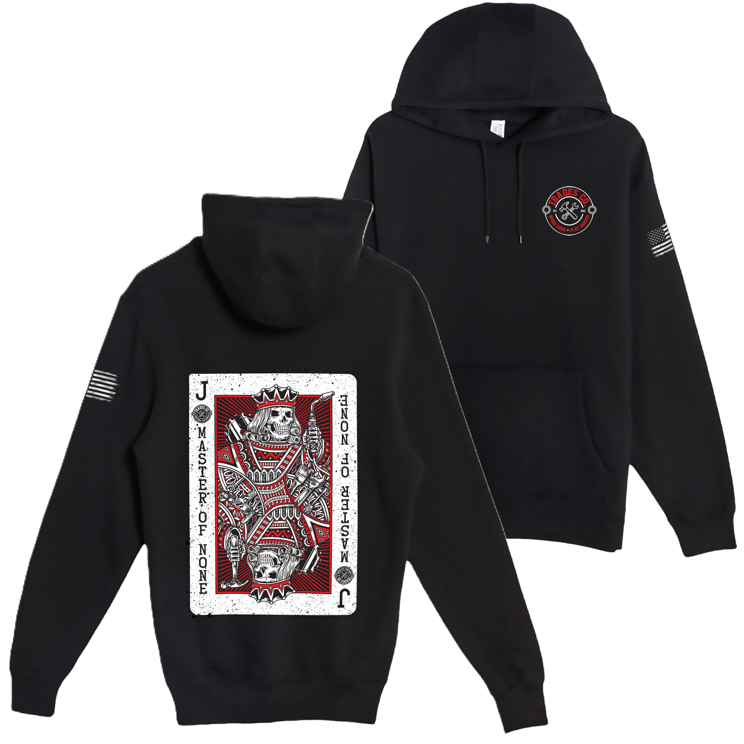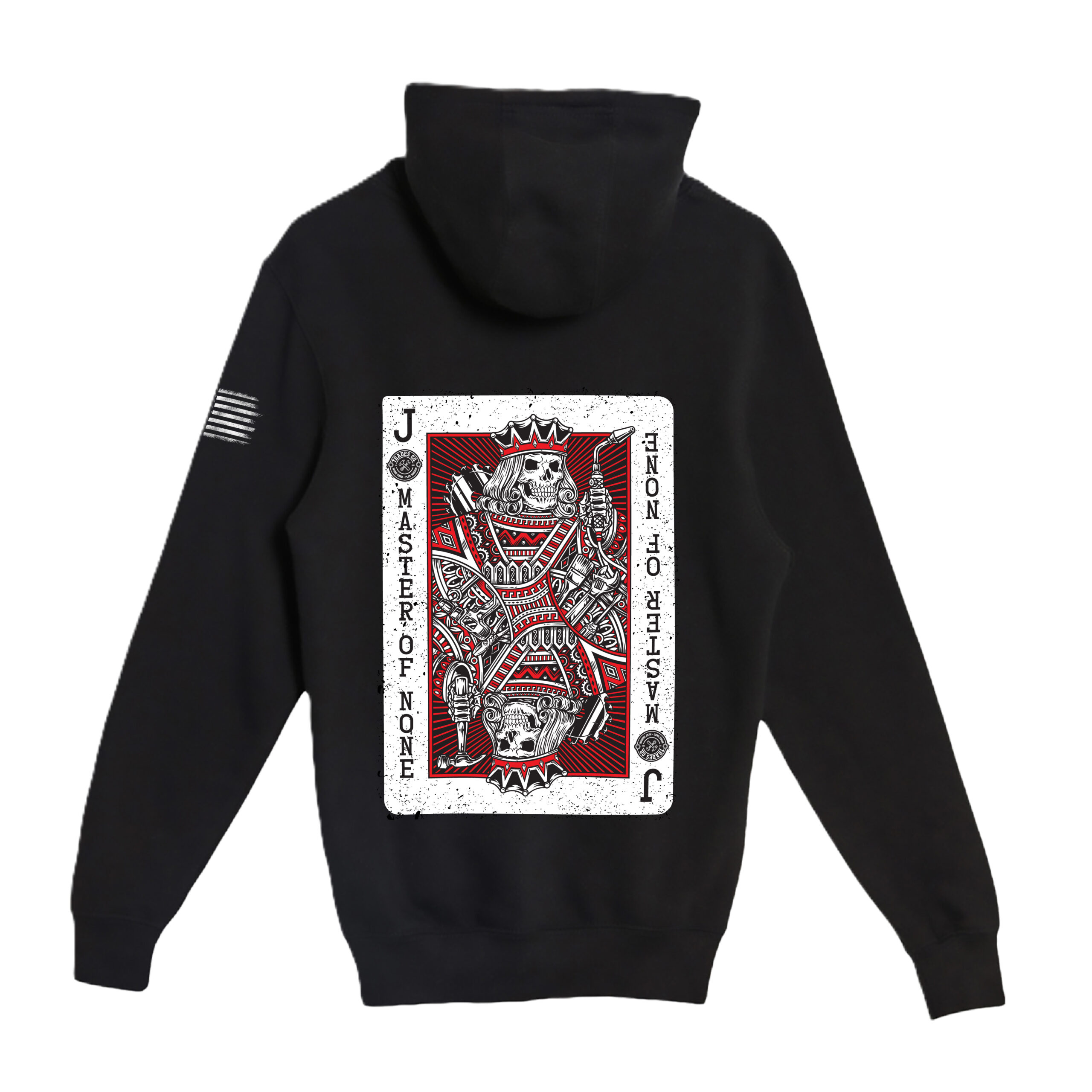 For the tradesman who knows a little bit of everything. This premium hoodie features our signature playing card design with “Jack Of All Trades, Master Of None” – perfect for the skilled worker who can handle electrical, plumbing, carpentry, and whatever else the job throws at them. Heavyweight comfort meets trades attitude.