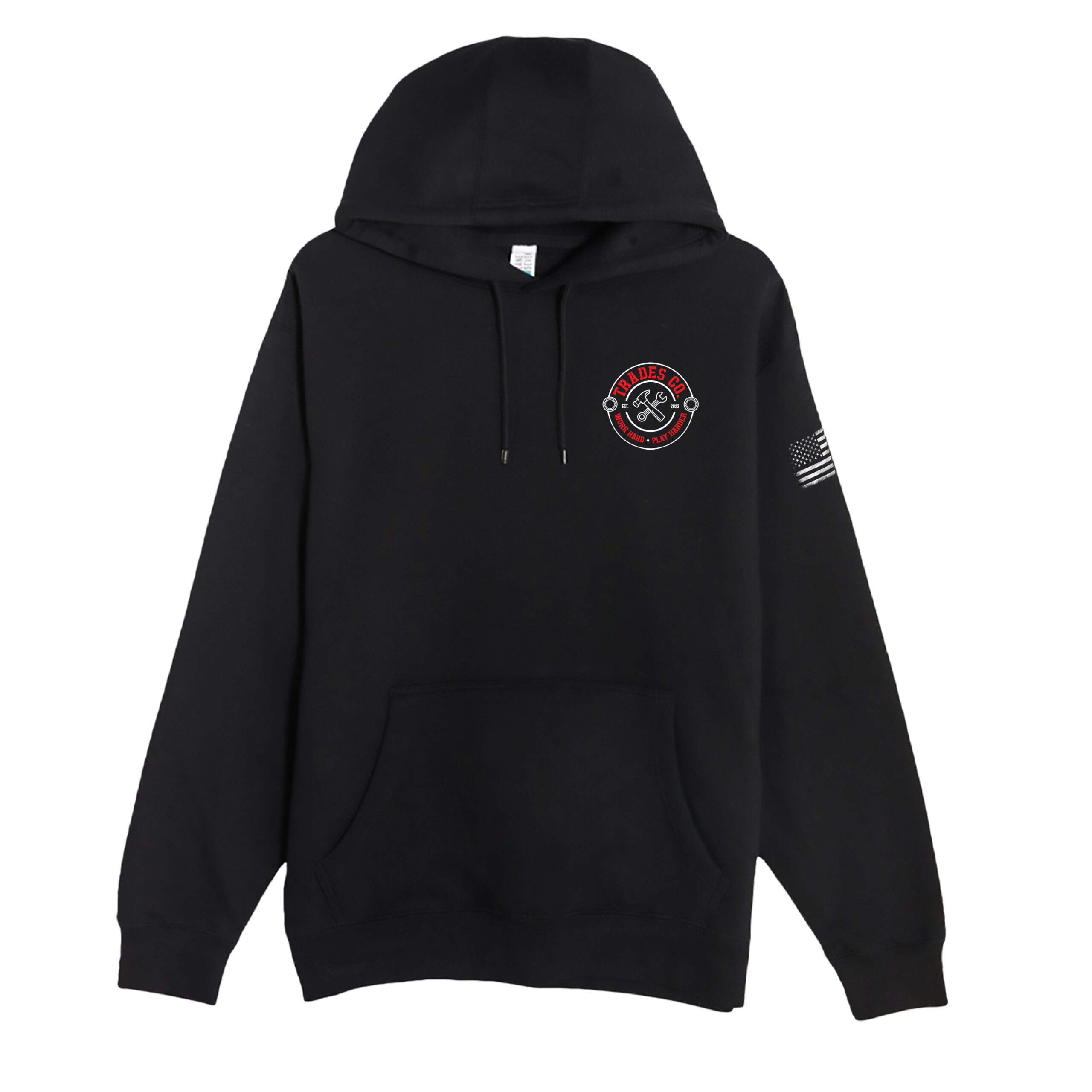 - Front: TradesCo heritage badge with red accent
